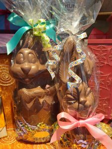 These charming bunnies stand alert, ready to delight all with their embossed floral patterns, $29.95 each, milk or dark chocolate